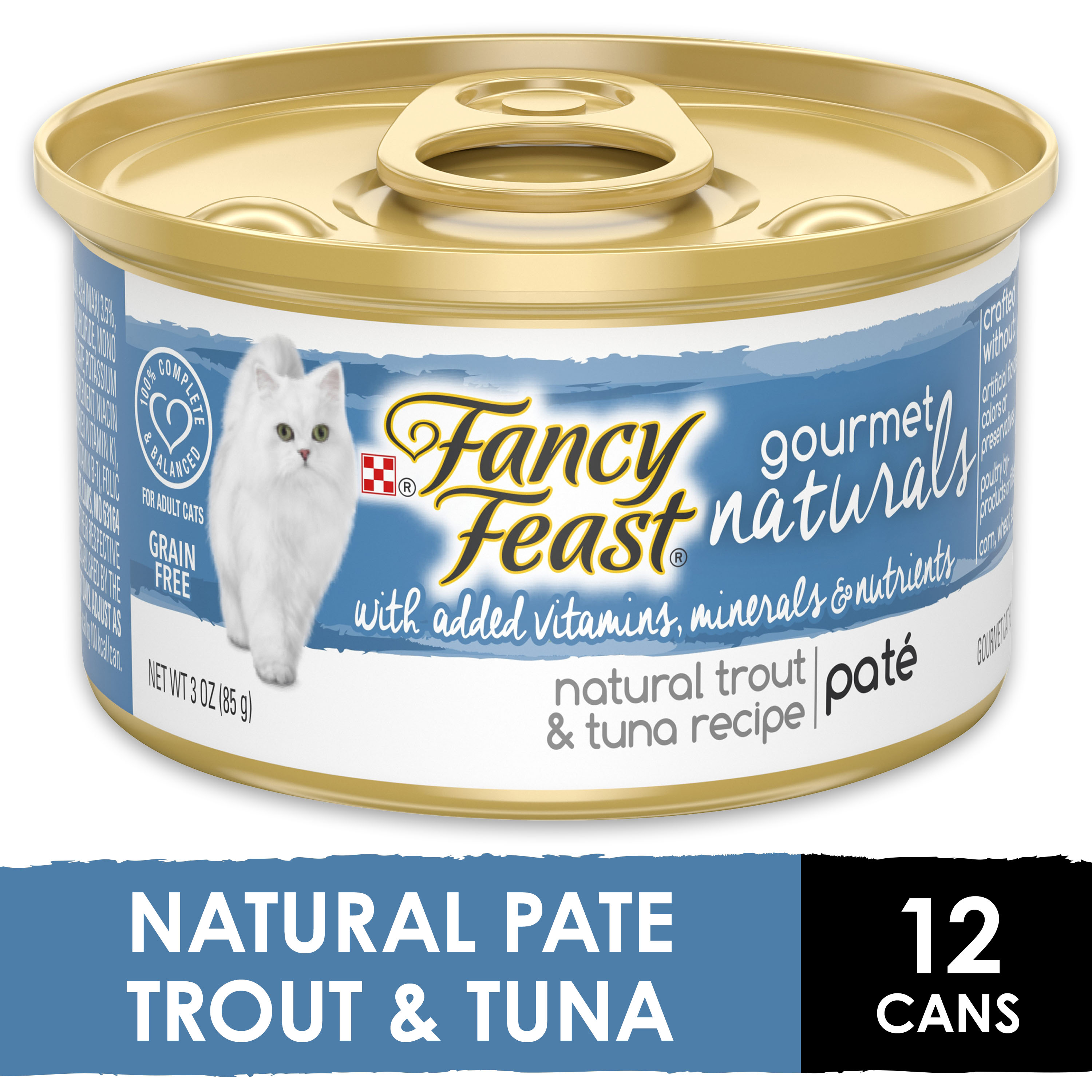 12 Pack Fancy Feast Grain Free Natural Pate Wet Cat Food Gourmet Naturals Trout Tuna Recipe 3 Oz Cans Walmart Com